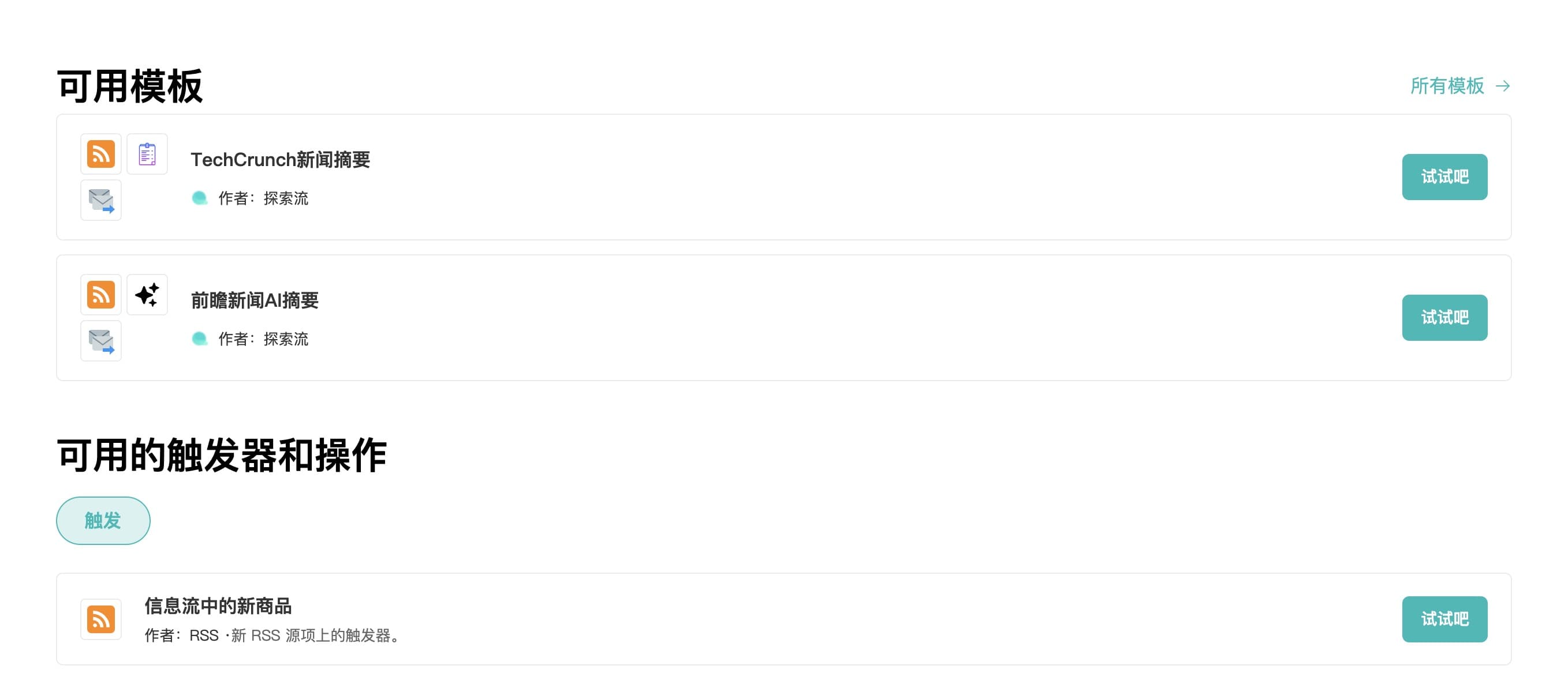 而在RSS工作流中,官方也给到了AI摘要自动发送的示例