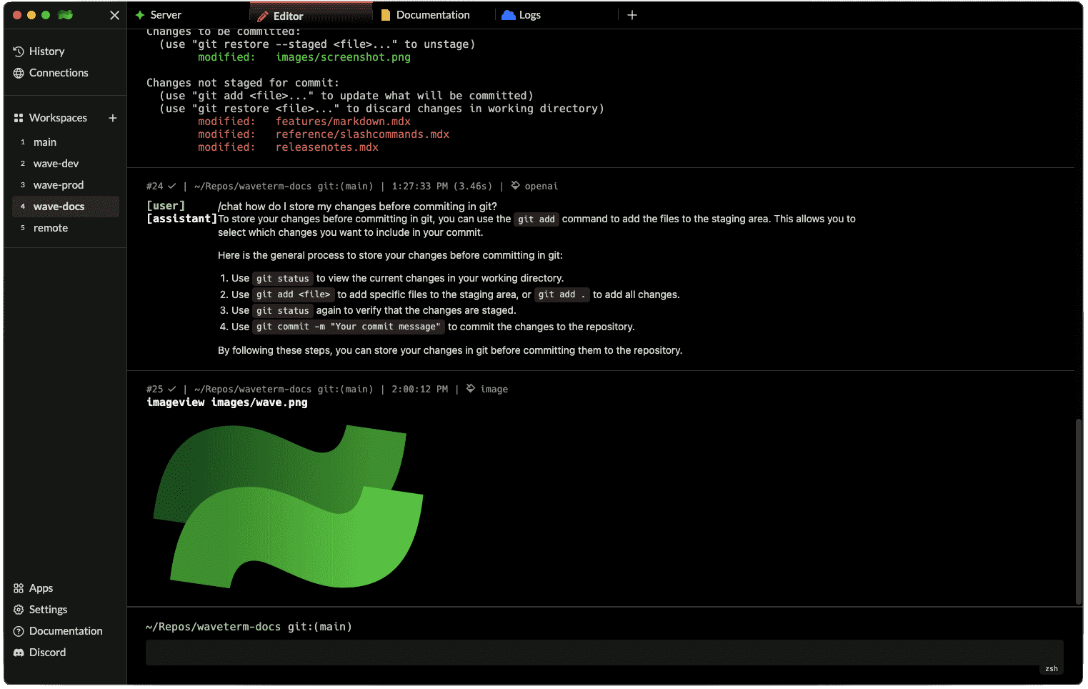 Wave 是一个开源的 AI 原生终端,专为无缝工作流程而构建。