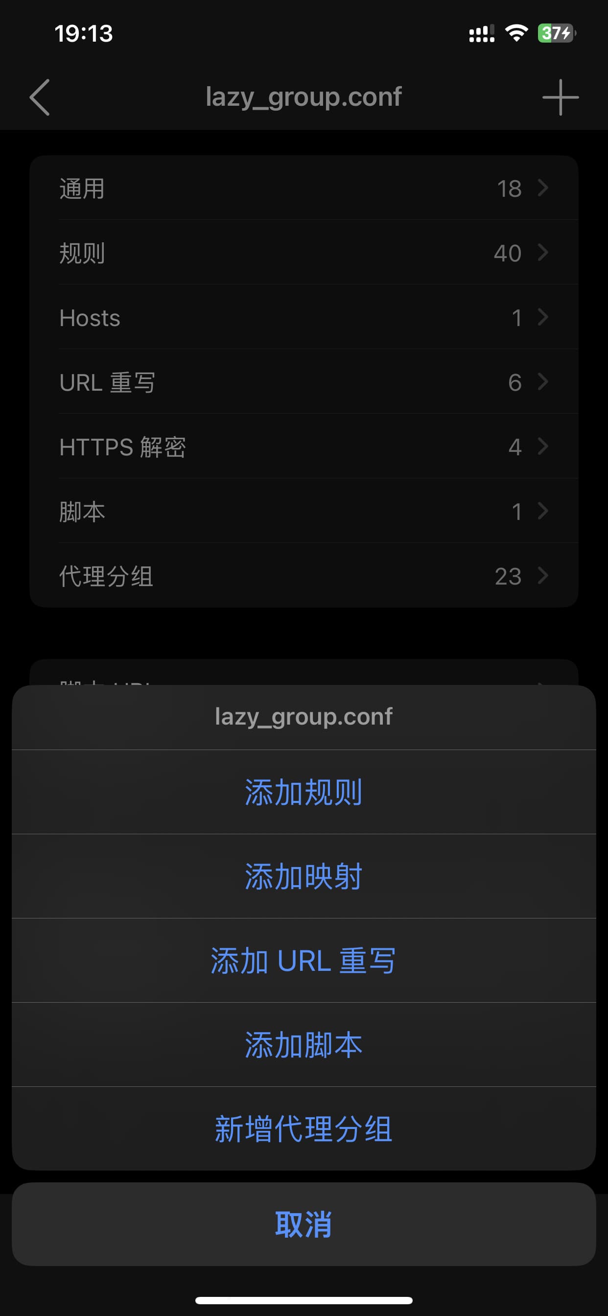 找到TIKTOK后复制链接到小火箭,在配置中选择本地文件再点击+后添加规则