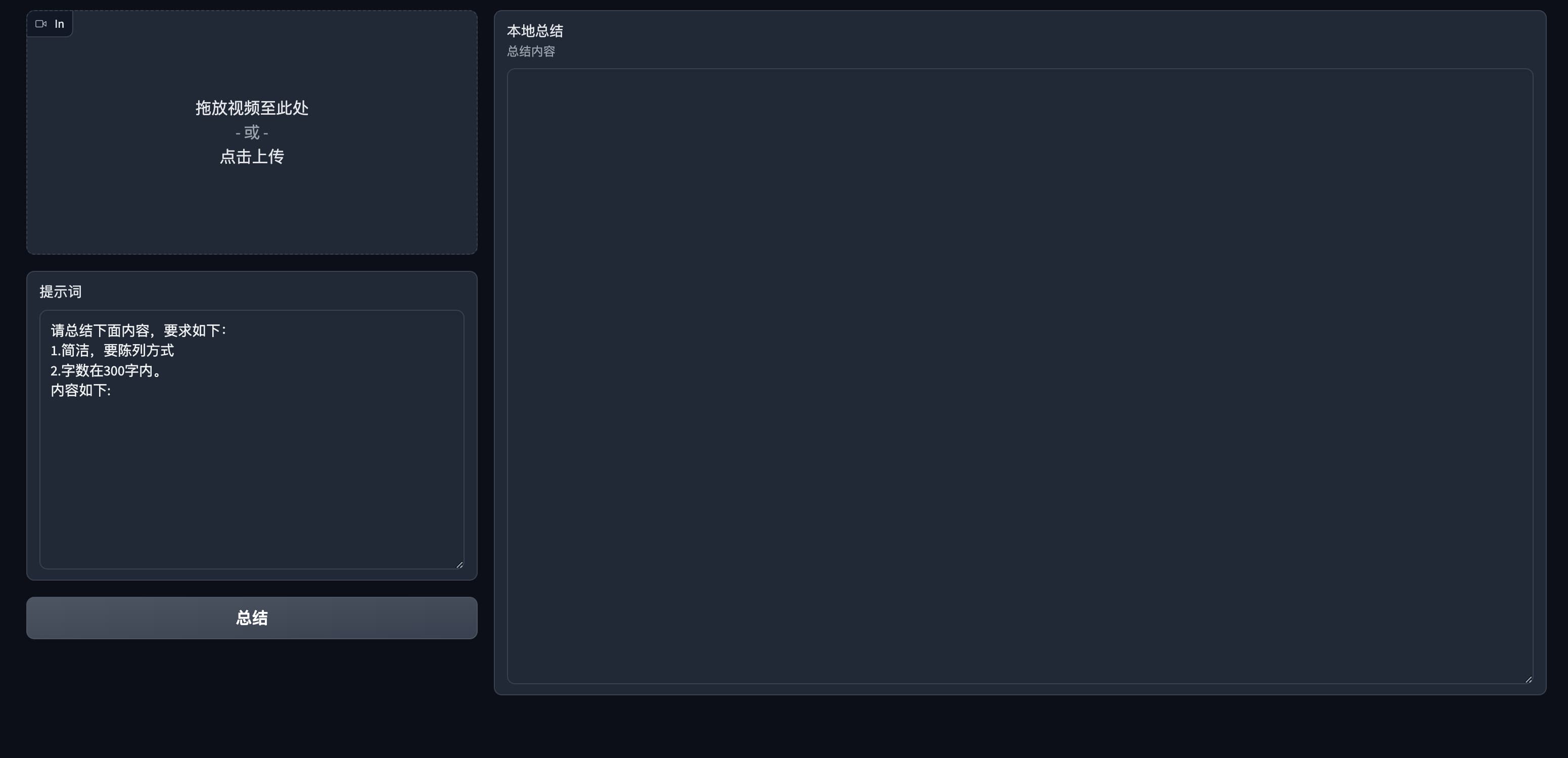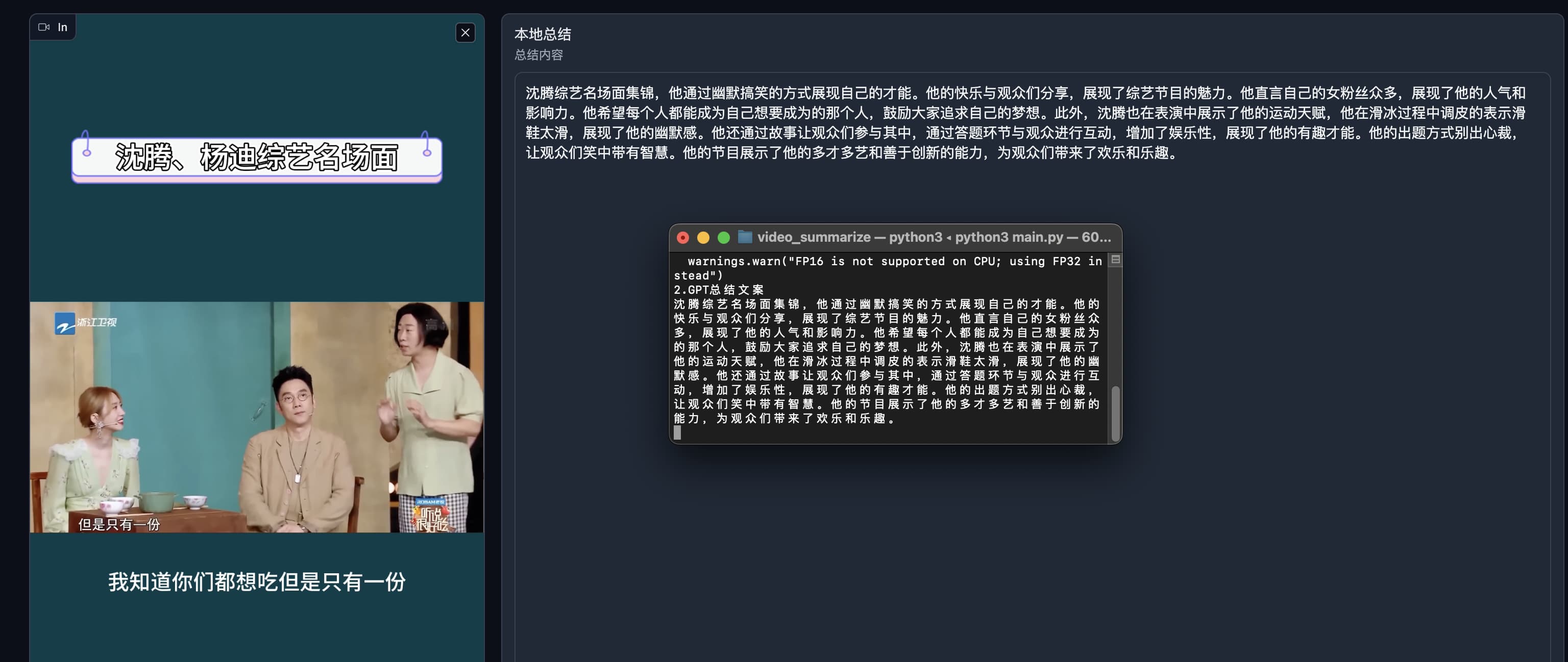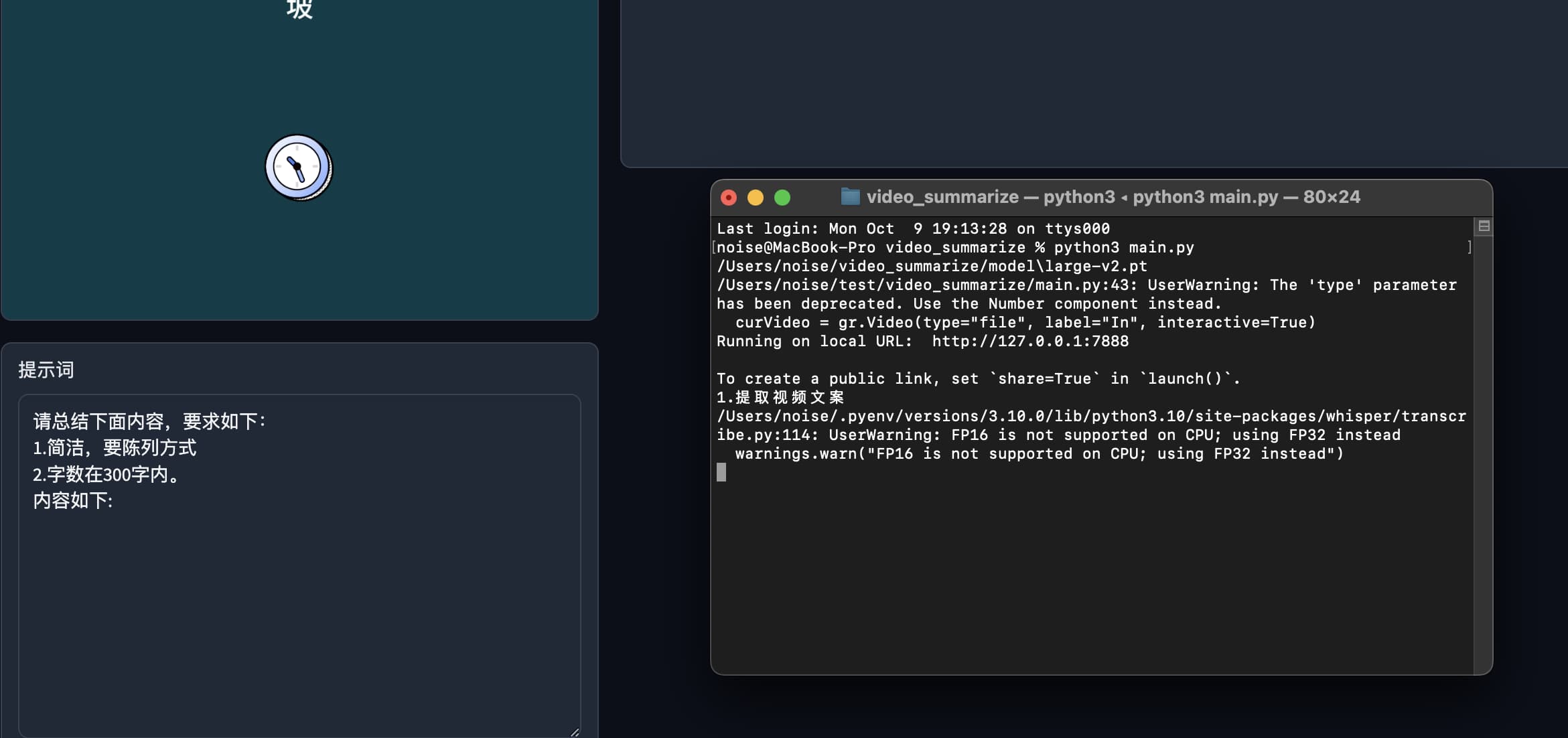 感谢Daniel带来的项目https://github.com/StartHua/video_summarize 借助该项目,你可以上传视频通过prompt对视频内容经行总结输出