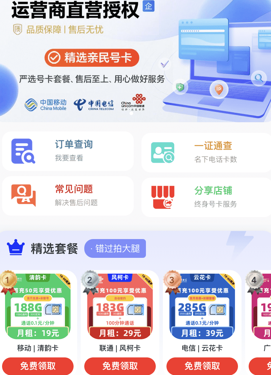 通过该入口你可以自主办理优惠套餐,所有办理的卡均需要实名,0元领取,免费配送