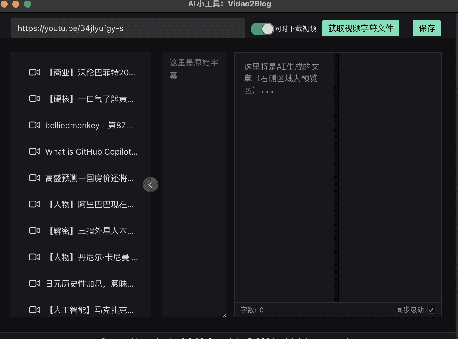 video2blog是一个可输入视频url下载视频并可转换为图文的跨平台程序,如果你不想自己编译,可前往https://github.com/aehyok/video2blog/releases 下载