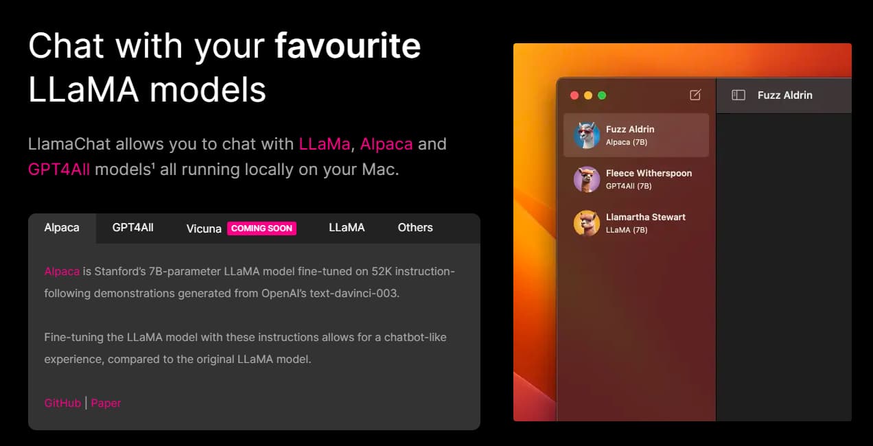 模型下载并完成合并后,MAC用户可以直接下载llamachat