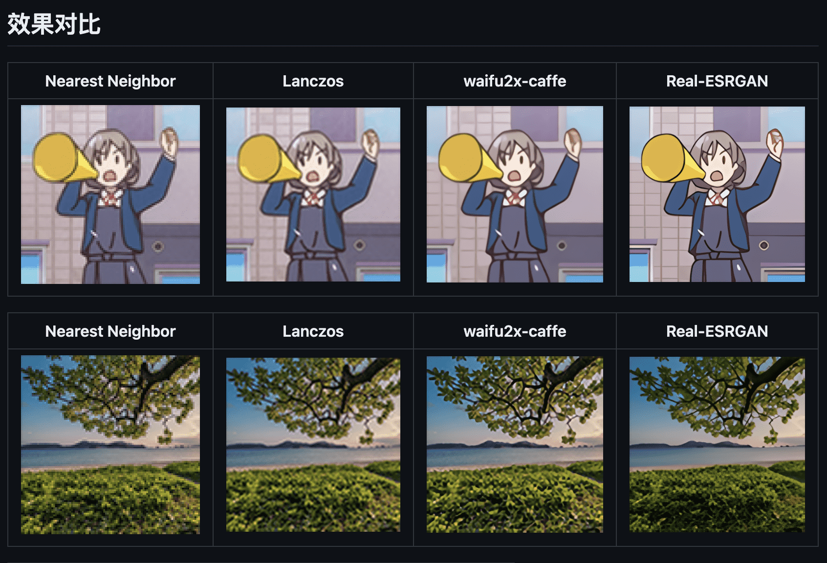 • 这一功能通过多次调用 Real-ESRGAN 后使用常规缩放算法降采样实现。