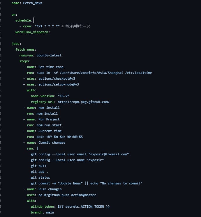 排除所需的环境依赖文件,先找到工作流代码fetchNews.yml
