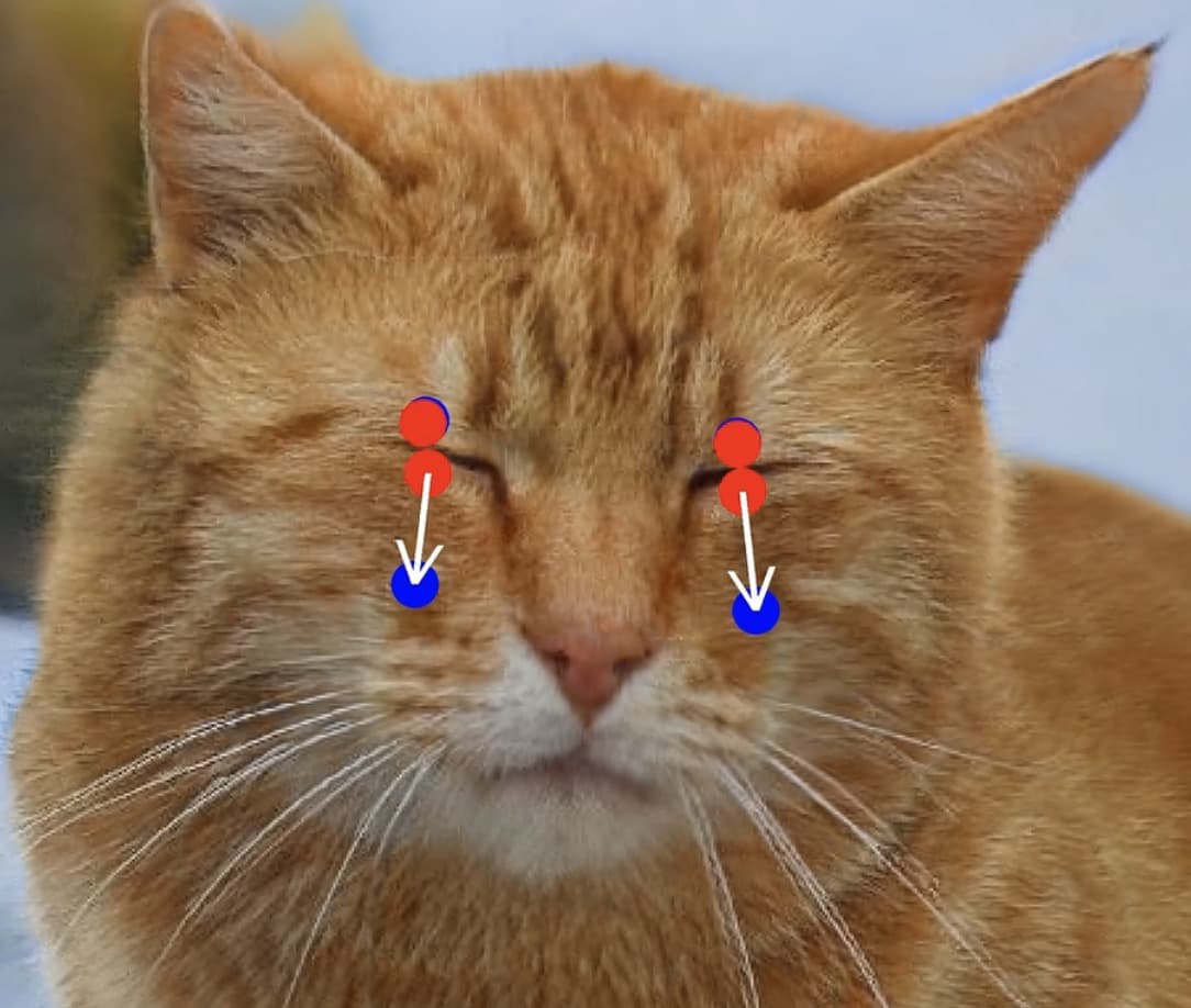 功能就不再过多介绍,可访问官方:https://github.com/XingangPan/DragGAN 查看,一个示例,点选方式让猫睁眼