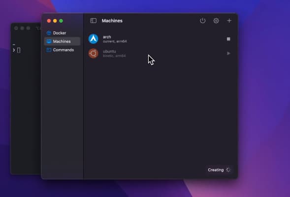 要使用完整的 Linux 机器,请在应用程序中选择您喜欢的发行版以创建新机器,然后双击以启动它或使用命令。